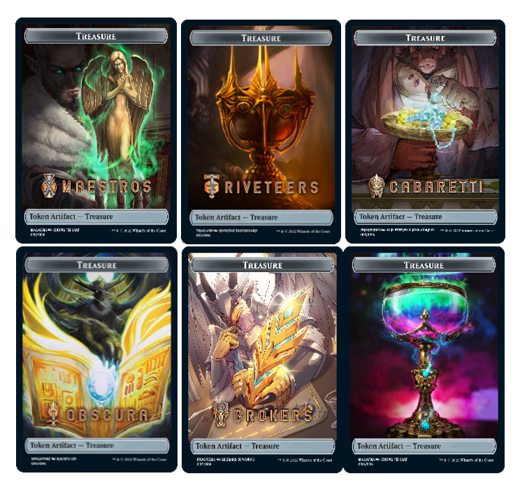 For the first time, players in selected Southeast Asian (SEA) countries will be able to own exclusive Family Treasure Tokens for Streets of New Capenna. Illustrated by artists in the region and with a limited single print run, six designs of the Treasure Tokens are available with every purchase of a collector booster box, while stocks last, at participating WPN stores (Singapore, Malaysia, Thailand, Indonesia and Philippines) and online (Singapore only).